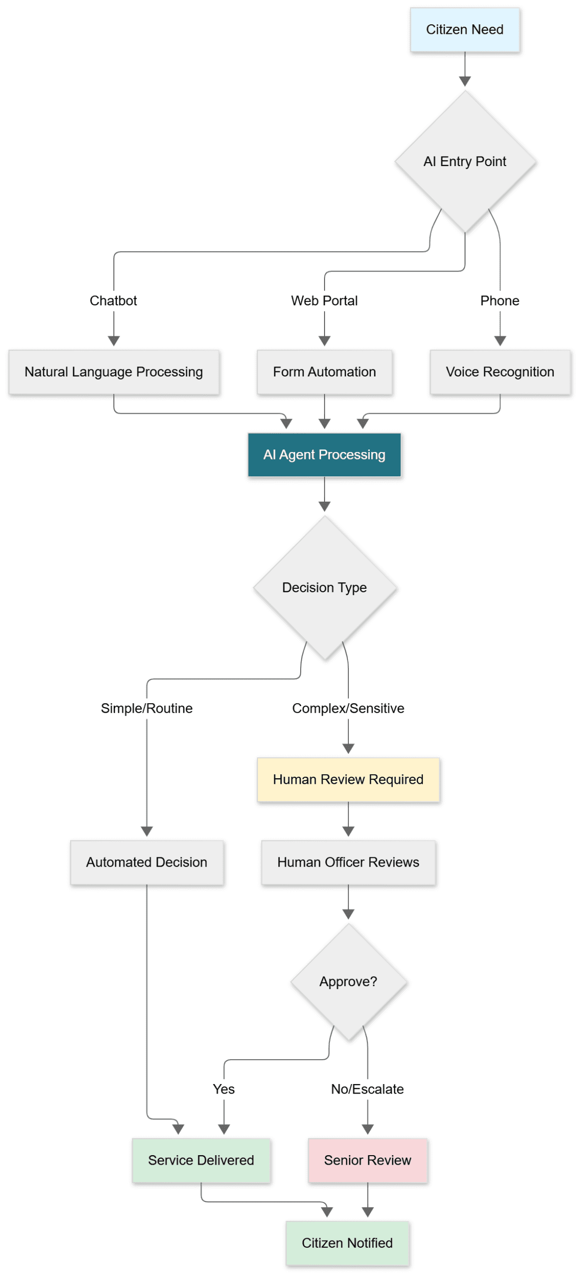 The result of these challenges is familiar to anyone who has waited months for a passport renewal or spent hours at a public hospital: inefficiency, frustration, and sometimes inequity. Rural and marginalized communities often suffer the most – they live furthest from offices, lack the insider know-how to navigate red tape, or face biases that have crept into human decision-making. Public servants, too, can feel overwhelmed by the volume of cases and the procedural rigidity that prevents them from focusing on individual needs. In short, the traditional public service delivery paradigm has been under strain, revealing gaps in efficiency, responsiveness, and inclusion.
