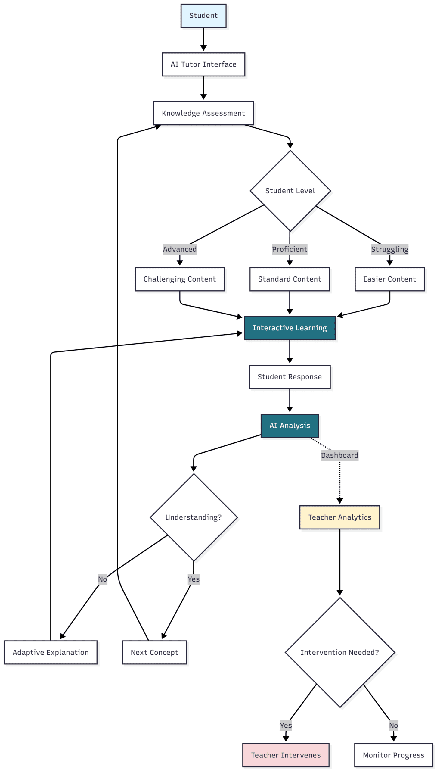 Personalised Learning with AI Tutors: One of the most exciting applications of AI in education is the intelligent tutor – essentially a personal learning assistant for each student. Imagine a chatbot or software agent that a student can ask for help with homework at any time. It explains a tough math problem step-by-step, adapts its teaching style if the student is still confused, and even throws in a relatable analogy drawn from the student’s interests to make the concept stick. This isn’t science fiction; it’s happening in various forms. For example, there are AI-powered learning apps for mathematics that adjust the difficulty of problems in real-time based on the learner’s performance – giving easier problems for concepts they struggle with, and harder ones once they master a skill. This adaptive learning ensures that students neither remain bored because the material is too easy nor do they feel hopeless because it’s too hard. It’s like having a patient private tutor who knows exactly where you need practice.